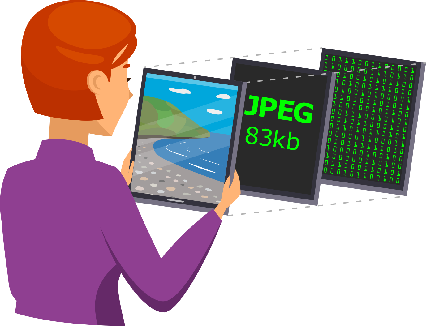 This idea is called 'compression', and is the underlying theory behind showing videos over the internet and storing large amounts of photos or songs on a mobile phone.