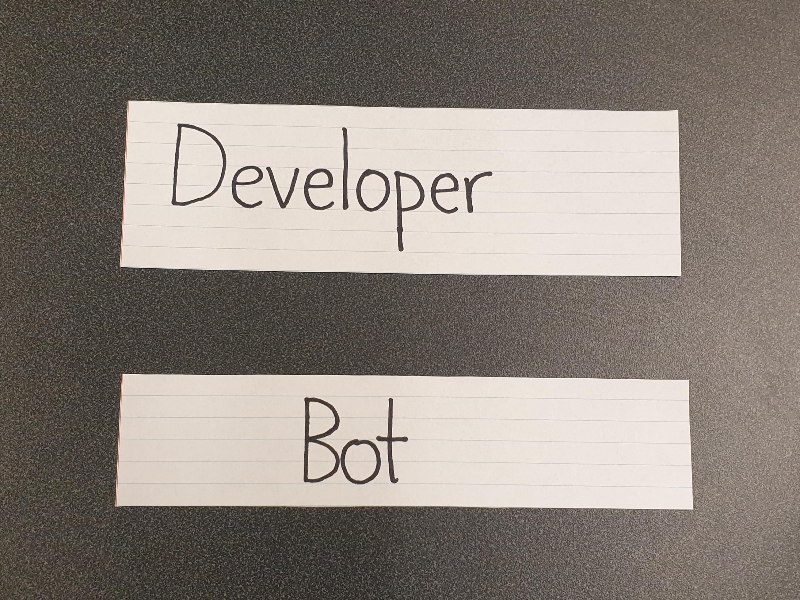 If you’ve made badges, you can wear the “Bot” one, and give your helper the “Developer” one.
