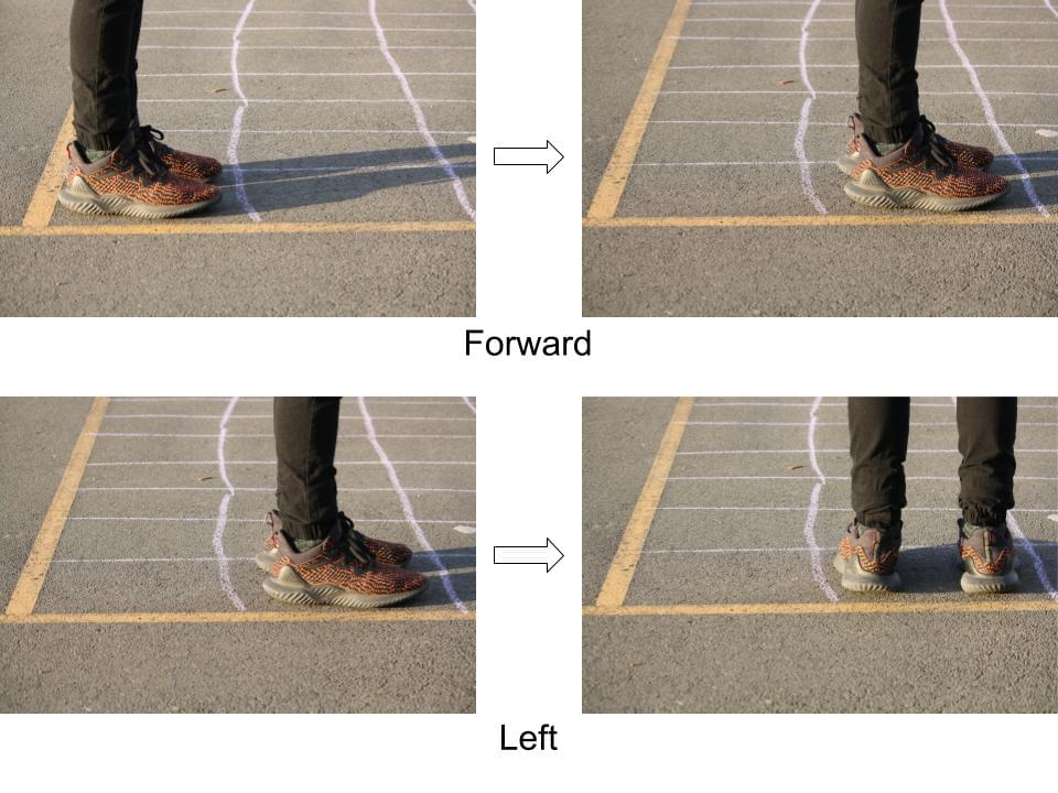 You can decide on a start and an end position (here the ball is in the end position). The kind of distance shown here (a few squares forward and a few to the right) is good to start with.