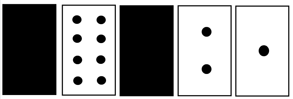 11 Three white binary cards are shown, one with eight dots, one with tow dots and one with one dot.