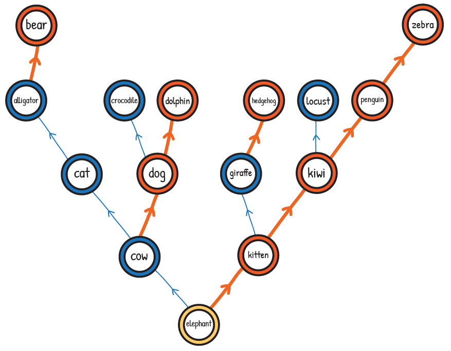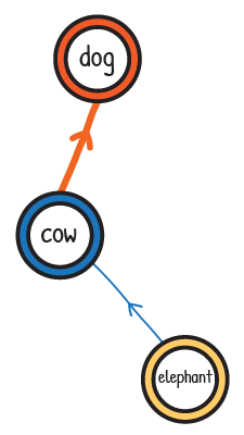 The first word chosen becomes the root (in the example it is the word “elephant”).
