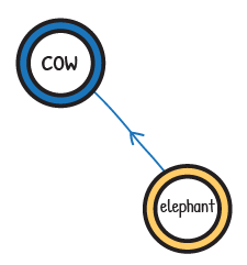 In this example it’s the word “cow”, so it comes before "elephant" i.e. to the left.