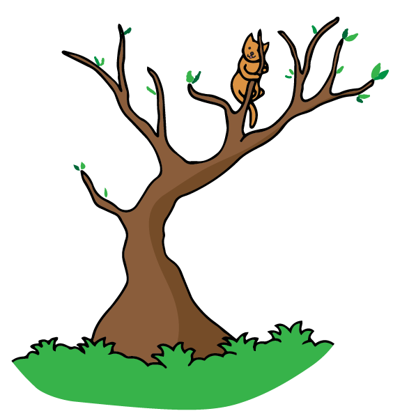For the tree drawn, the instructions "right, right, left, right" will get to the cat; note that although the first branch looks like a decision between "left" and "straight", we want to get used to the idea of calling it "left" and "right".