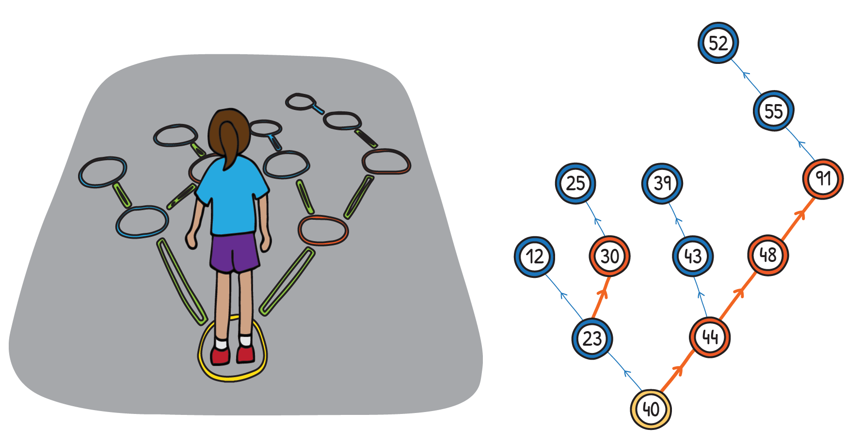 This activity requires a "binary search tree" (BST) to be marked out on as large a surface as possible, such as a playground.