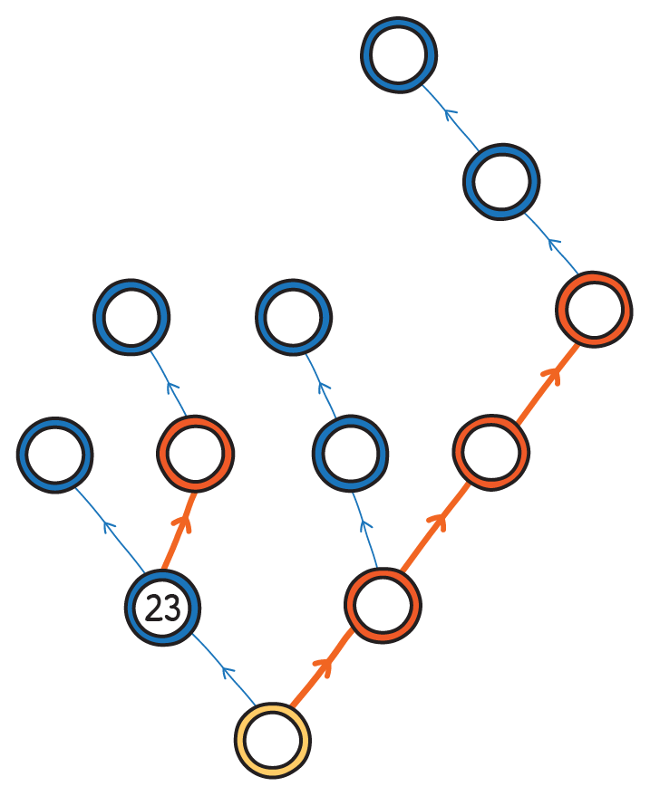 Hide the 23 again, and reveal the disc down the right branch, which is 30.
