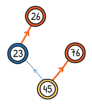 For example, suppose we're making a tree with the numbers 45, 23, 26 then 76.