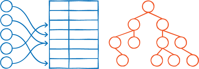 These data structures each store and organise data in different ways and have different structures, but both allow you to do the same thing - search for, and find data very quickly.