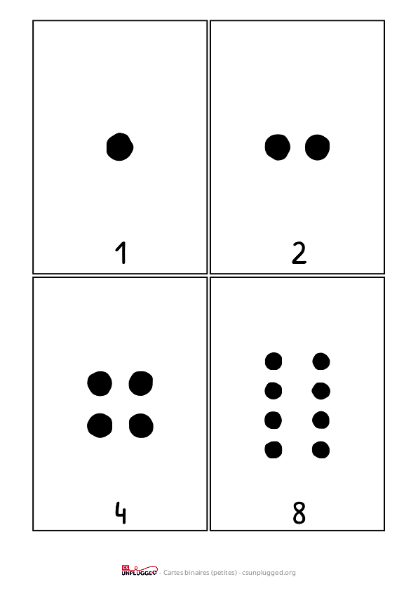 Il existe également une version interactive en ligne des cartes binaires ici, du Computer Science Field Guide , mais il est préférable de travailler avec des cartes physiques.